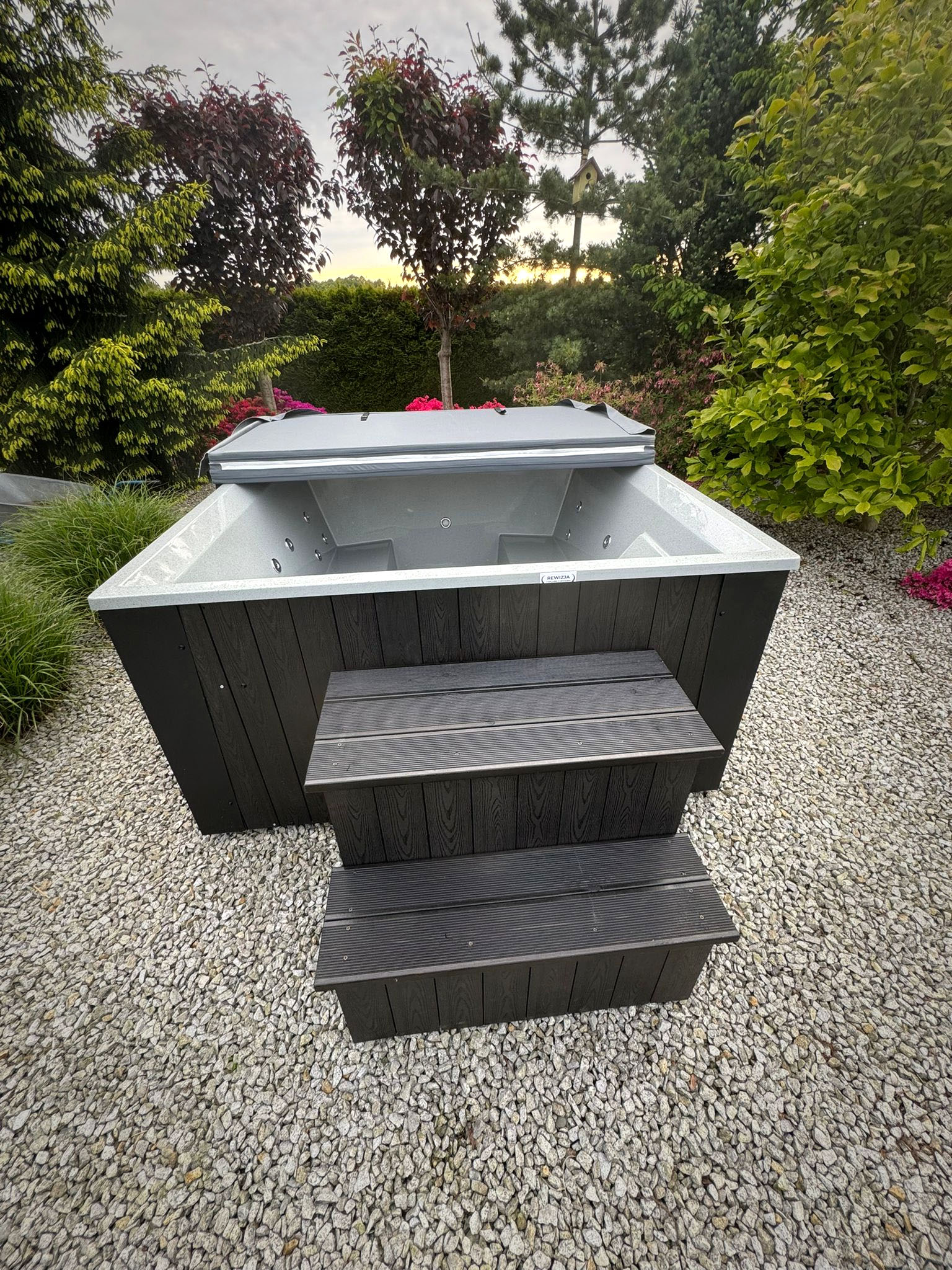 Detta rektangulära utomhusspabad är ett perfekt val för familjer och vänskapsgrupper som vill ha gott om plats, hög komfort och en stilren lösning för utemiljön. Med sin stabila konstruktion och generösa badyta passar modellen utmärkt på terrass, altan eller i en pergola/relaxzon. Med rätt isolering och ett termiskt lock kan du njuta av badet året runt.