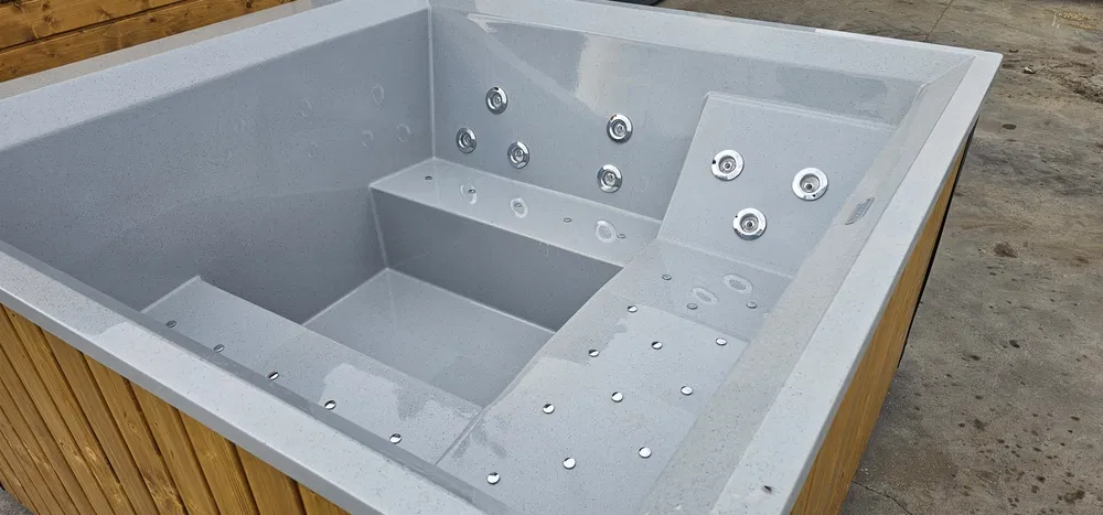 Badets insats är tillverkad av högkvalitativ komposit med glasfiberförstärkning, polyesterharts och gelcoat. Det ger mycket god motståndskraft mot väderpåverkan, aggressiva faktorer, UV-strålning och låga temperaturer.
