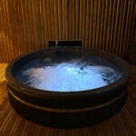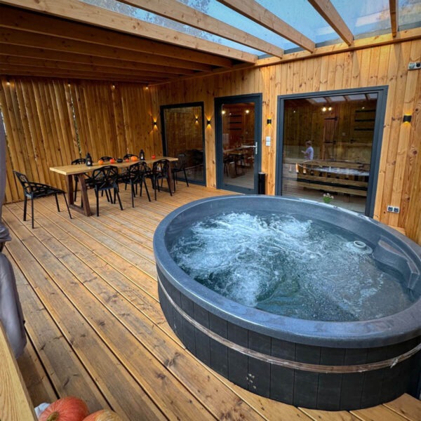 Runt utomhusspabad (6–8 personer) – Generös badyta för social avkoppling i trädgården