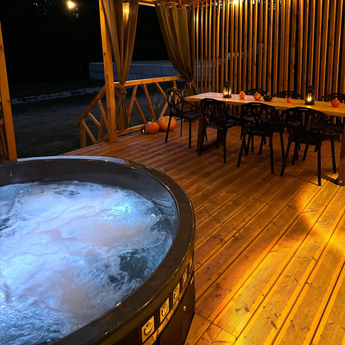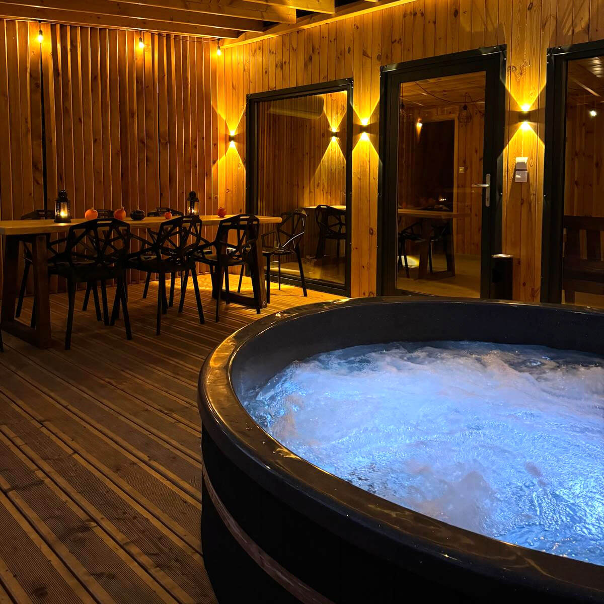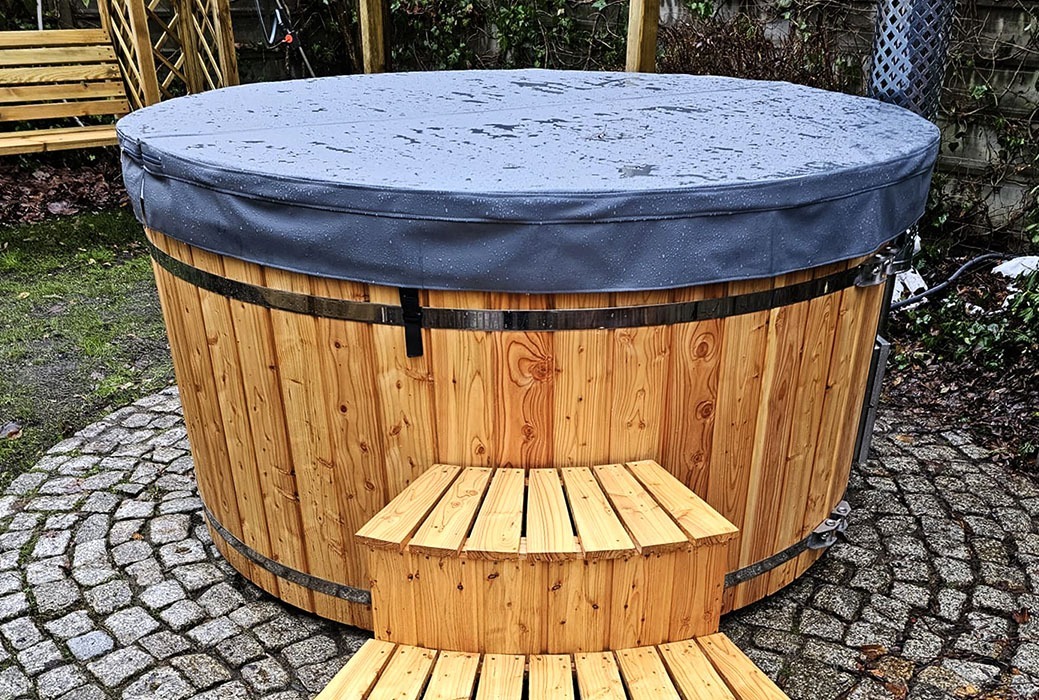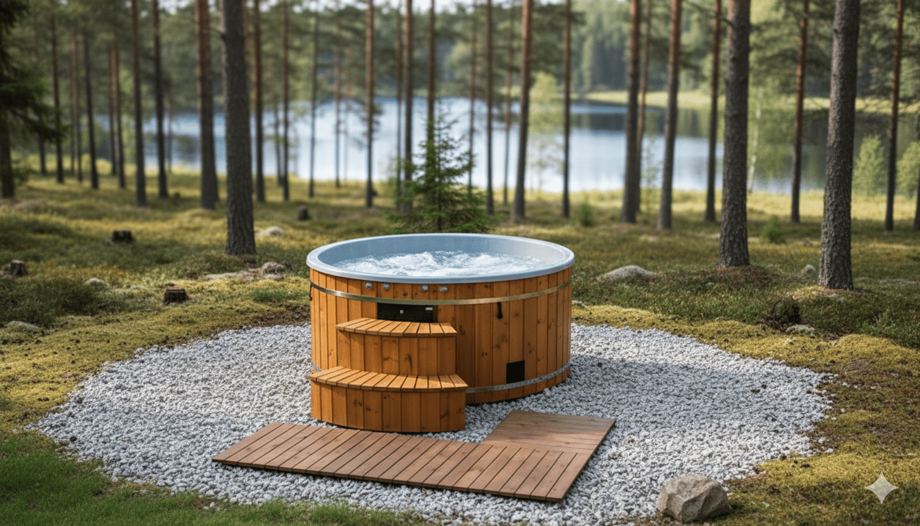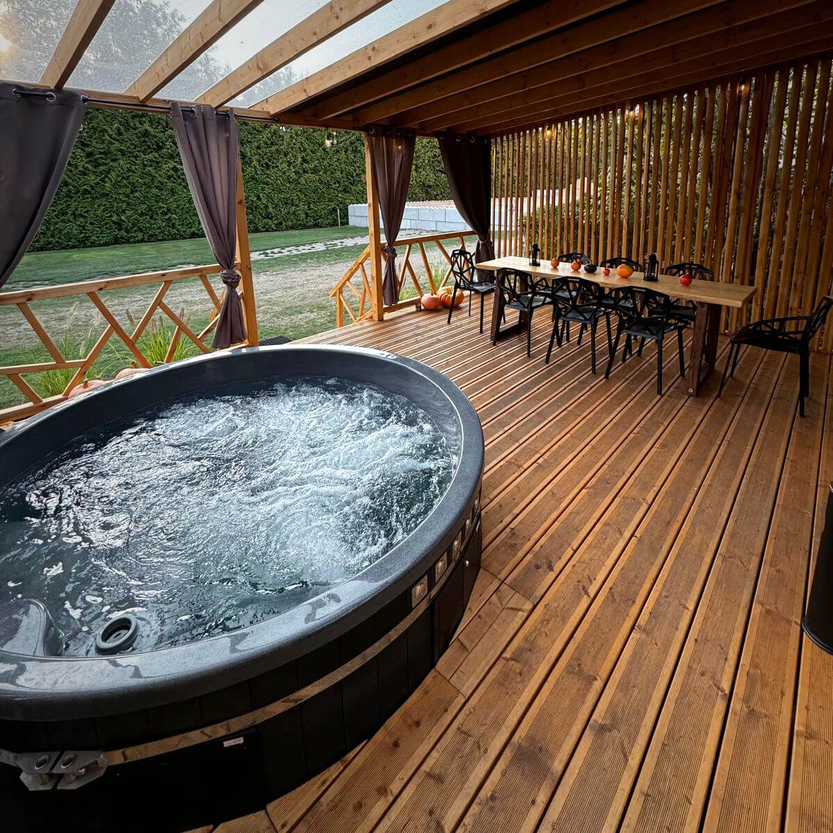 Runt utomhusspabad (6–8 personer) – Generös badyta för social avkoppling i trädgården