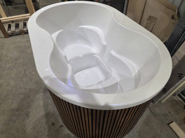 Kallbadtunna är ett perfekt val för två personer som vill kyla ner kroppen snabbt och effektivt efter bastu eller ett intensivt träningspass. Insatsen är tillverkad i vit akryl, vilket ger en hygienisk yta som är enkel att hålla ren.