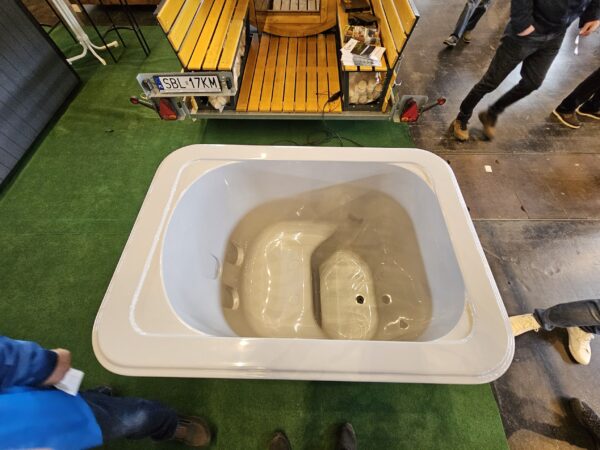 Badet levereras som en komplett lösning med beklädnad och avlopp, vilket gör installationen enkel och användningen bekväm – perfekt för daglig avkoppling och återhämtning.