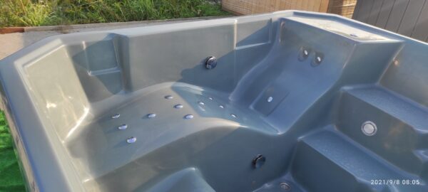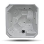 Spabadet är utrustat med 29 massagejets som ger en lugnande hydromassage för hela kroppen. Den ergonomiskt utformade sittlösningen gör det möjligt för flera personer att njuta samtidigt – oavsett om man sitter bekvämt och umgås eller sträcker ut sig i den liggande platsen.
