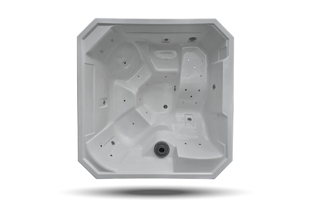 Spabadet är utrustat med 29 massagejets som ger en lugnande hydromassage för hela kroppen. Den ergonomiskt utformade sittlösningen gör det möjligt för flera personer att njuta samtidigt – oavsett om man sitter bekvämt och umgås eller sträcker ut sig i den liggande platsen.